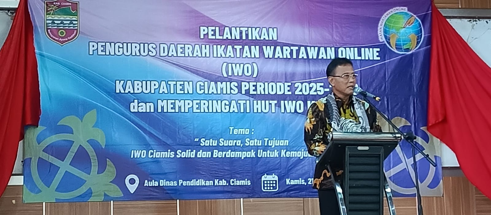 “Atas nama pribadi dan Pemerintah Daerah Kabupaten Ciamis, saya ucapkan selamat kepada Kang Heru Pramono beserta jajaran pengurus yang baru dilantik. Semoga keberadaan IWO semakin membawa kemajuan dan menjadi mitra strategis pemerintah daerah dalam menyebarkan informasi yang akurat dan bermanfaat,” ujar Herdiat.